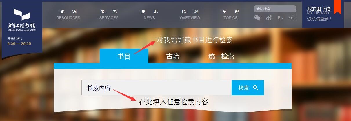① Readers can make a reservation online on homepage of official website of Zhejiang Library.