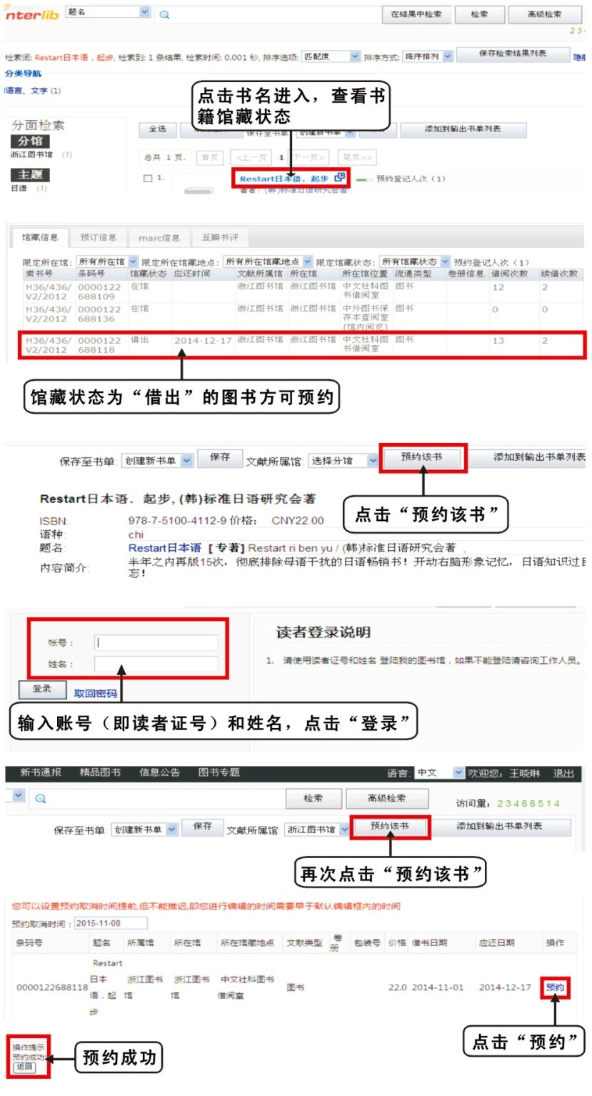 ④ When borrowing reserved book, please make sure your reader’s card can borrow books.