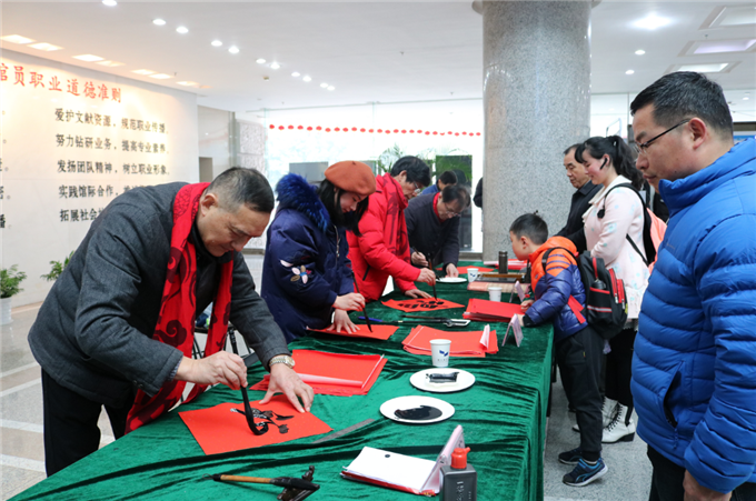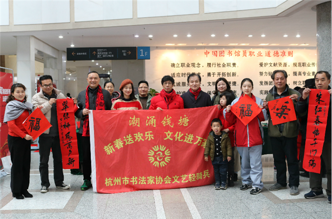 "The people are living a life of prosperity and happiness, and the pig is playing under an elegant arch to welcome another year of abundance." With the footsteps of the New Year near, on January 29, 2019, from 9:30 am to 11:30 am, we specially invited Wang Xiaoyong, the president of the Hangzhou Calligraphers Association, and the members Bian Hong, Zhao Li and Shen Su’an to our library to welcome the New Year by writing and disseminating “福” (a Chinese character meaning Blessing)to everyone.