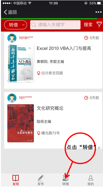 II. Confirm whether your reader’s card can borrow book. For viewing reader, reader’s card reported missing, late fee of reader’s card is over 10 yuan, or reader’s card has reached its borrowing limits, transfer service is not available.