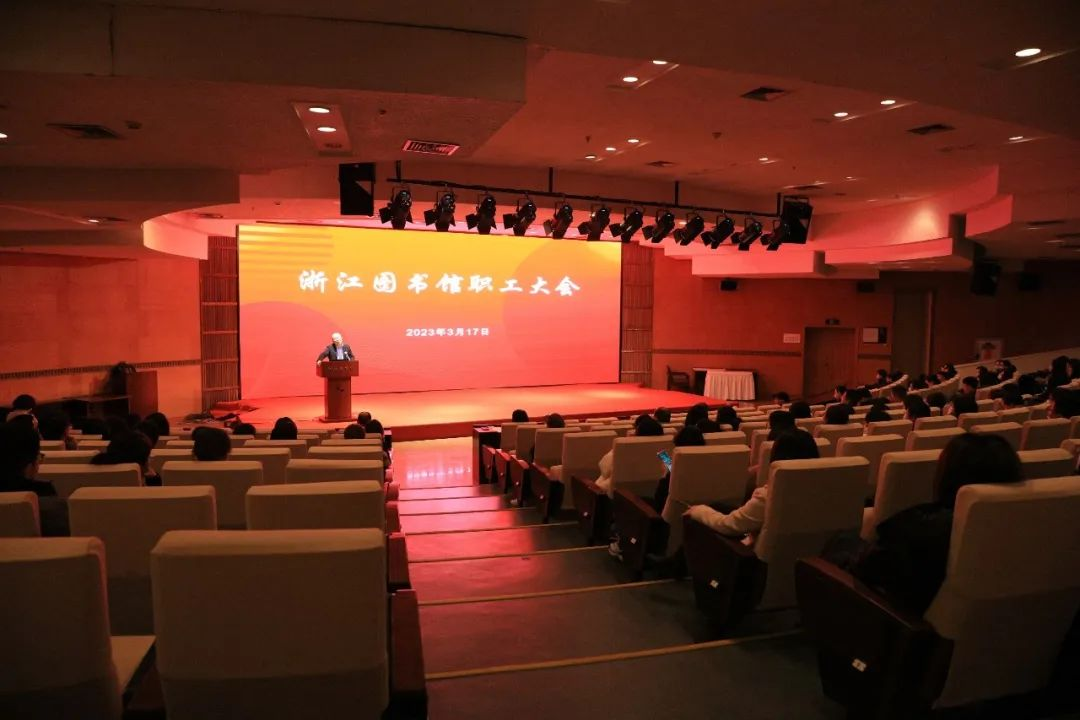 On March 17, 2023, Zhejiang Library held a plenary session in the Lecture Room to schedule the work of 2023. Hu Hairong, Deputy Director (Presided over the work) of Zhejiang Library, gave a report to mobilize all library members to make great efforts in the relocation to Zhijiang new library building. Deputy Secretary of CPC Committee of Zhejiang Libray, Xu Jie, Deputy Director, Li Jianying, Zhu Yechen and all the staff attended the meeting.