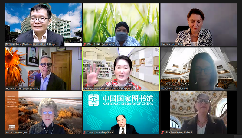 Leaders’ Conversations for the National Libraries was held on 1st Nov 2021, SGT 5.30pm – 7.30pm on Zoom. Xiong Yuanming, director of the National Library of China, and the leaders of many world-renowned national libraries, including National Library of Australia, National Library of Finland, National Library of Singapore, British Library, and National Library of Indonesia attended the meeting.