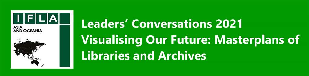 Jointly presented by the National Library Board, Singapore and the IFLA Regional Office for Asia and Oceania, in support of the IFLA Global Vision, the Leaders’ Conversations series is a global digital platform launched in 2020 for library and archives leaders to share insights and developments of their institutions. This year’s theme is Visualising Our Future: Masterplans of Libraries and Archives. This theme is particularly poignant to the library and archives world as we face multiple challenges these two years. The conversations will focus on the future we envisage and the plans we have to carry out to achieve our vision beyond these challenges.