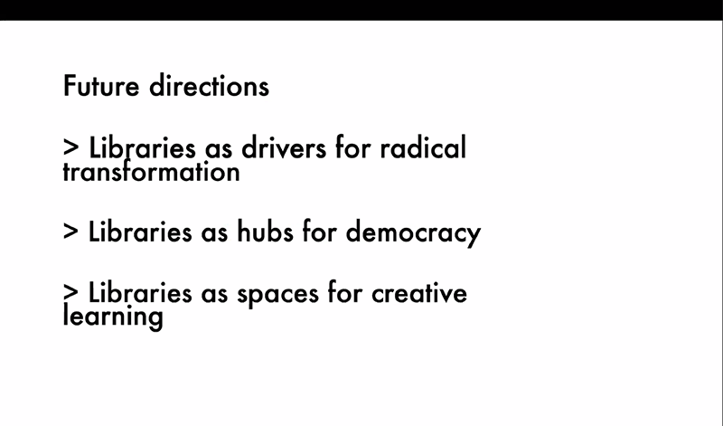 Sidsel Bech-Petersen introduced the current situation of the Aarhus Public Libraries and the planning and prospects for the future development of the public library through three parts namely "Drivers for Radical Transformation", "Hubs for Democracy" and "Spaces for Creative".