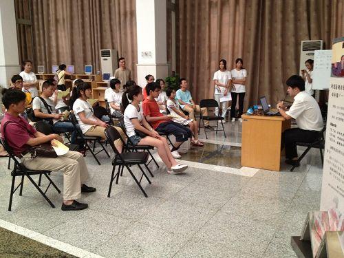 2012年7月7日-21日,由浙江图书馆图书文献服务部与浙江工商大学日本学院联合,在浙江图书馆一楼大厅举办了一次为期三周的暑期日语角活动。