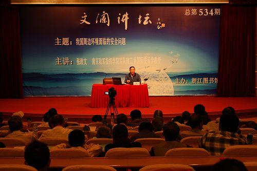 我国的地缘环境在世界大国里是较为复杂的,形势也比较严峻,比如东海、钓鱼岛主权、海洋划界、南海等问题。因此,10月21日下午,第534期文澜讲坛特地从南京邀请了解放军南京陆军指挥学院军队政工系国际关系学教授张政文,为近500名听众详析我国周边环境面临的安全问题。