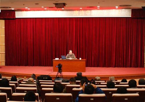 接着,陈教授还向听众们介绍了古人对于除夕元日的呈现。首先是驱傩,在唐代驱傩变成了一种世俗娱乐,王建的《宫词》中描绘了人们驱傩的欢乐情绪。其次是守岁。陈教授引用了不少唐代诗人的作品,如孟浩然的《除夜有怀》、白居易的《客中守岁在柳家庄》、高适的《除夜作》等等,本是非常愉快的节日,但这些诗却表达了诗人对新的一年到来的愁怀。陈教授风趣地解释道,因为诗人们很纠结,而且他们都有共同的特点就是孤身在外,借着守岁来抒发自己心中的惆怅,当然大部分的人还是非常幸福快乐的。最后,陈教授简单介绍了朝会和贺年习俗,使大家对古人欢度除夕元日有了初步的了解。