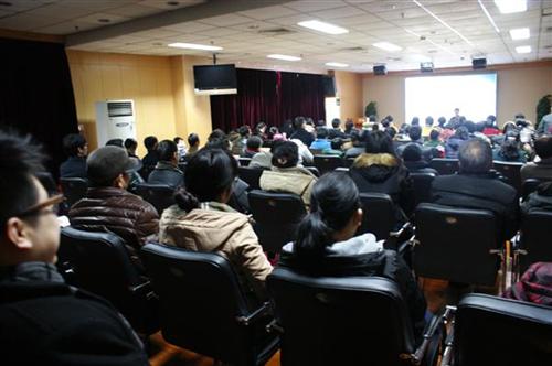 3月1日下午,春节过后第一个休息日,小雨绵绵,浙图二楼集体视听室被到场听课的150余位朗诵公开课学员挤得水泄不通,浙江传媒学院播音主持专业的刘超老师正在给学员讲“语言表达技巧之停顿与连接”。