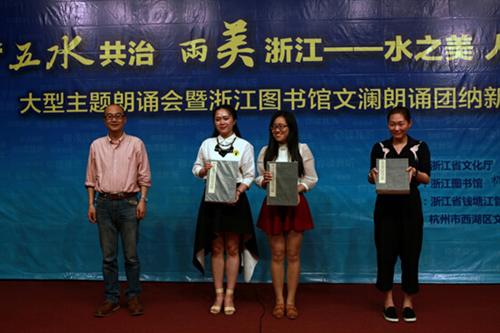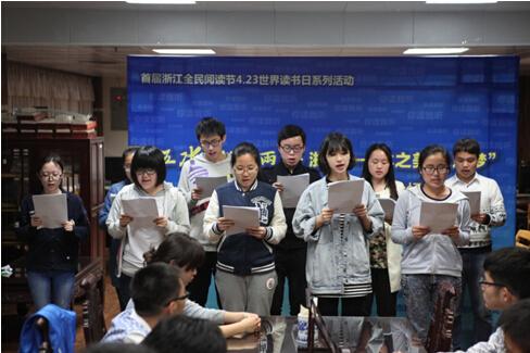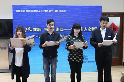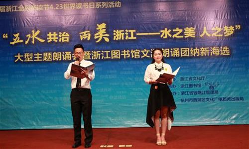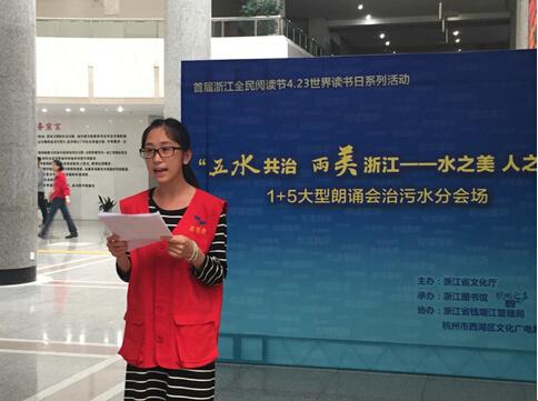 4月19日下午,“五水共治,两美浙江——水之美人之梦”大型朗诵活动在浙江图书馆举行。为迎接“首届浙江全民阅读节”及4.23世界读书日的到来,由浙江图书馆牵头,全省98家公共图书馆联动,围绕 “五水共治 两美浙江”主题,举办系列朗诵活动,旨在发挥文化在提升人的环保意识和治水自觉等方面的促进作用,以朗诵的形式来讴歌、并分享我省在“五水共治、两美浙江”建设中取得的成果。
