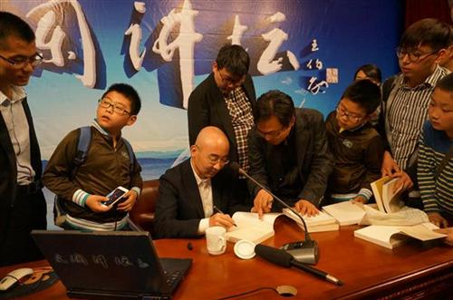 讲座结束后,听众们请张老师签名留念