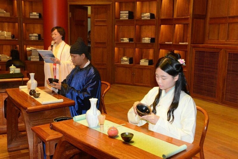 9月26日晚上,在一湖满月下,文澜朗诵团的团员们纷纷拿出了自己的看家本领,诗、书、唱、舞、茶艺,一应俱全。开场舞蹈“故乡”婀娜多姿、轻盈优美,茶艺表演重现了南宋时点茶、斗茶的奇艺,现场书法和宋词朗诵表演浑然一体,诗+歌的完美演绎,关于中秋和月亮的诗文朗诵更是美轮美奂。作为2015年杭州国际戏剧节的系列公益活动之一,本次中秋雅集特别为现场观众带来了一些戏剧对白和戏剧独白诗,把大家带入了诗和戏剧相互渗透融合的妙境,如《罗密欧与朱丽叶》的经典“月下对白”将听众带进了莎士比亚于的戏剧世界,那一句句诗化的对白直扣人心。而话剧《去年冬天》的片段给人留下很多有关友情、亲情和爱情的思索,其中一段独白所引用的古诗寥寥几句就让人体会到了老人内心的孤独和挣扎。而《琥珀》、《一个无政府主义者的意外死亡》等当代话剧中对国外经典诗作的引用和改编都为这些话剧注入了诗性元素,经过文澜朗诵团团员的演绎,让更多人对这些话剧有了深层次地认识。现场互动环节更是热烈火爆,观众们踊跃参与到猜名剧经典片段和所读诗歌名的活动里,也有观众现场选取喜欢的诗歌朗诵。