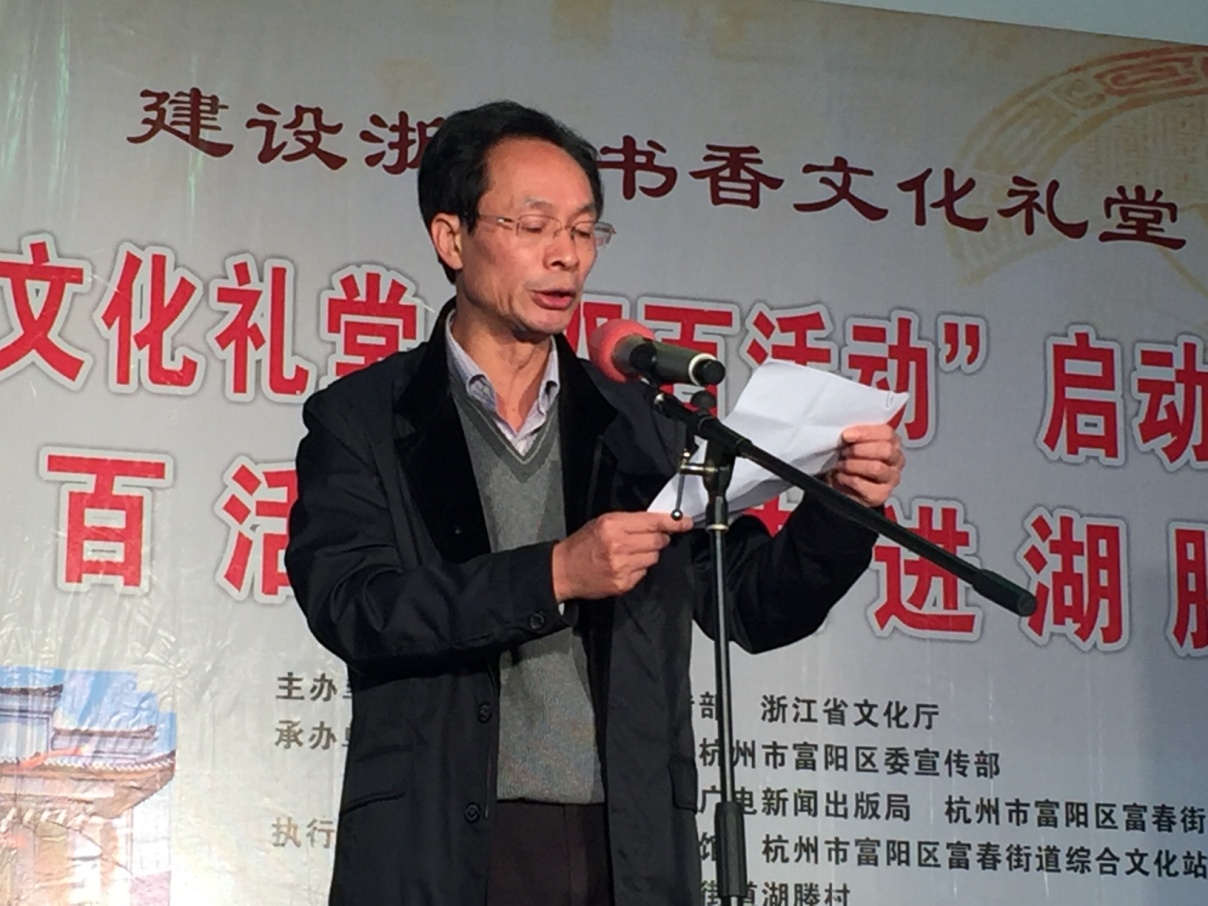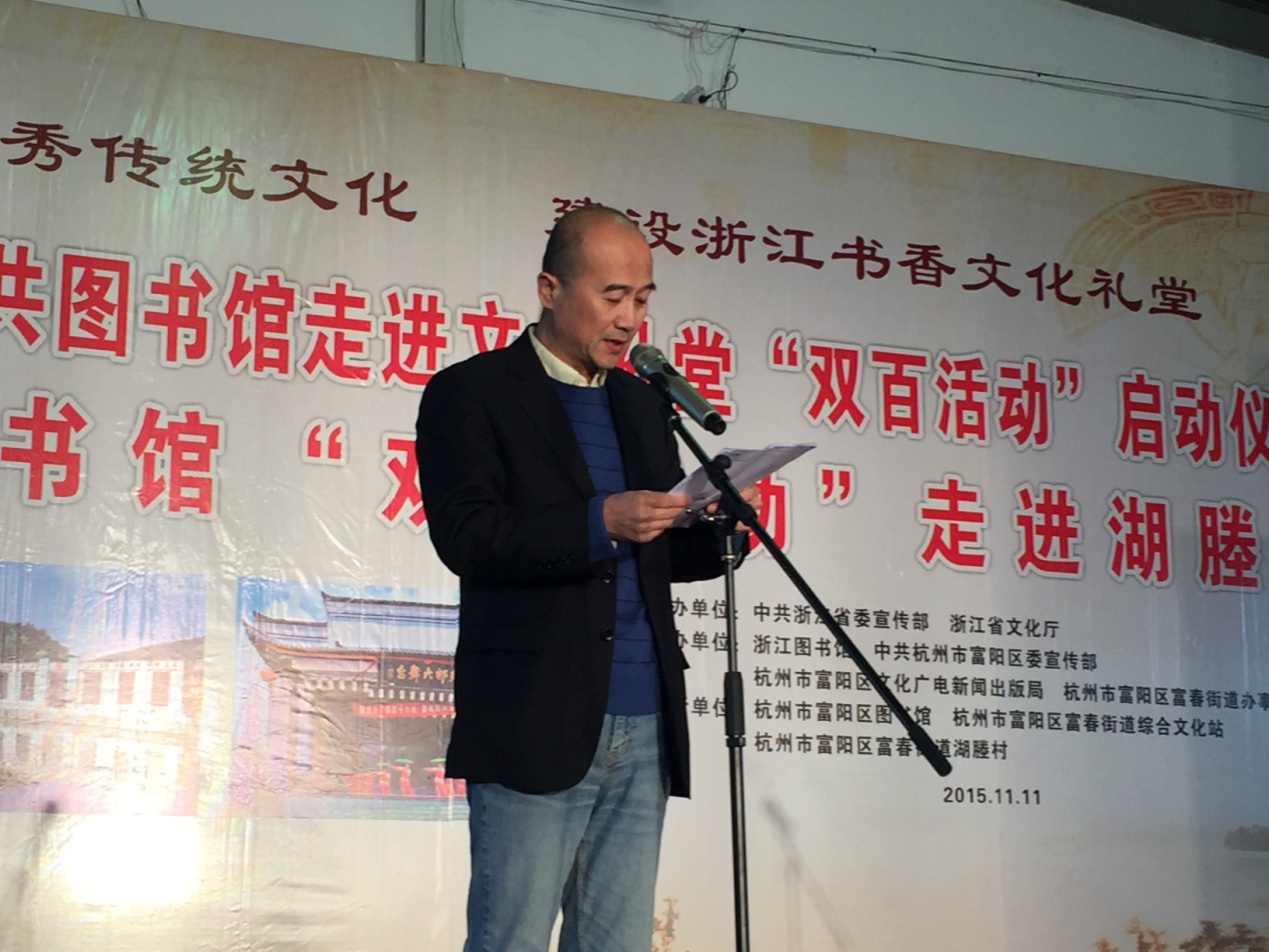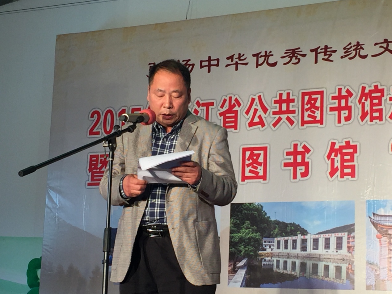 浙江省文化厅副厅长柳河宣布“浙江省公共图书馆走进文化礼堂双百活动”正式启动。