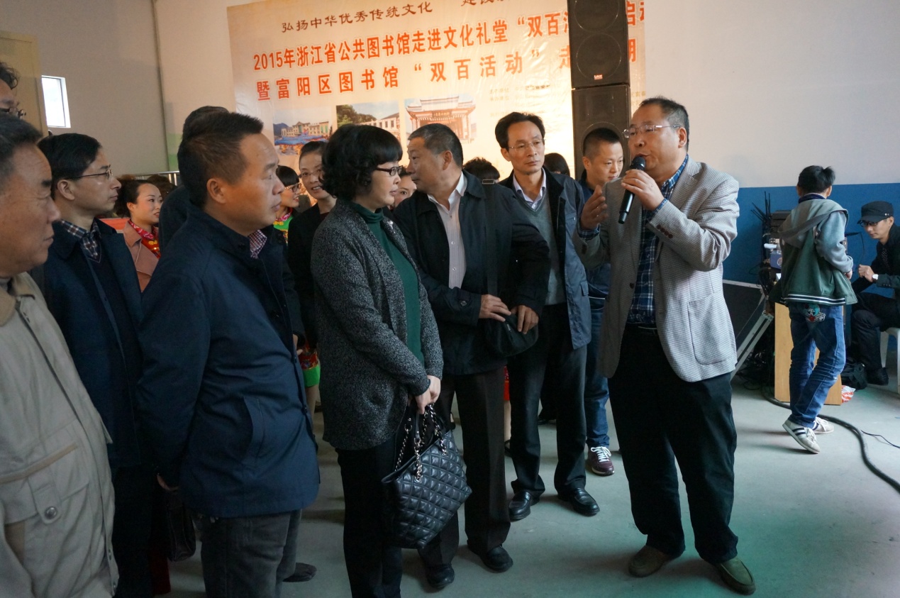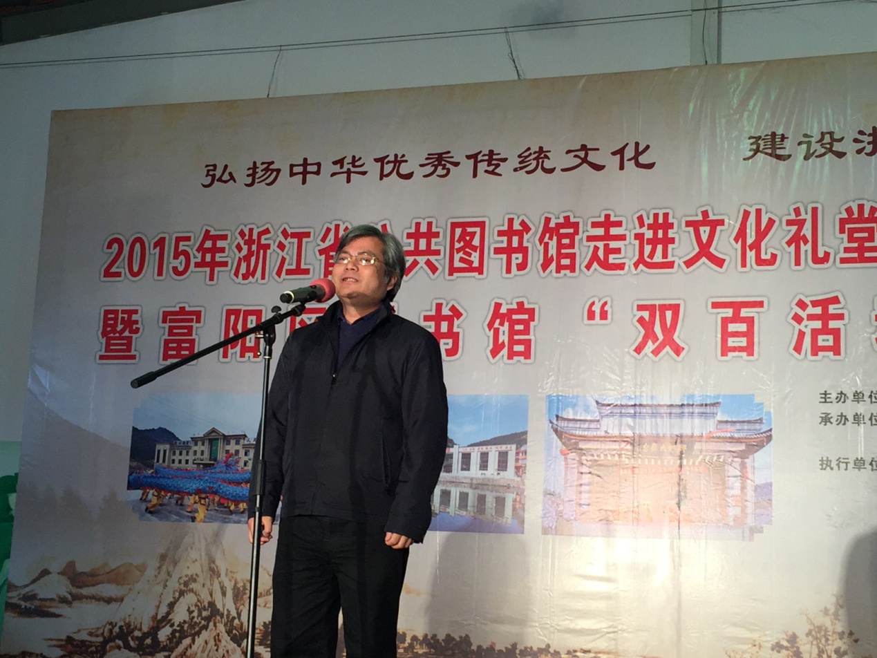 浙江图书馆馆长徐晓军介绍2015年浙江省公共图书馆双百活动走进文化礼堂有关筹备情况。