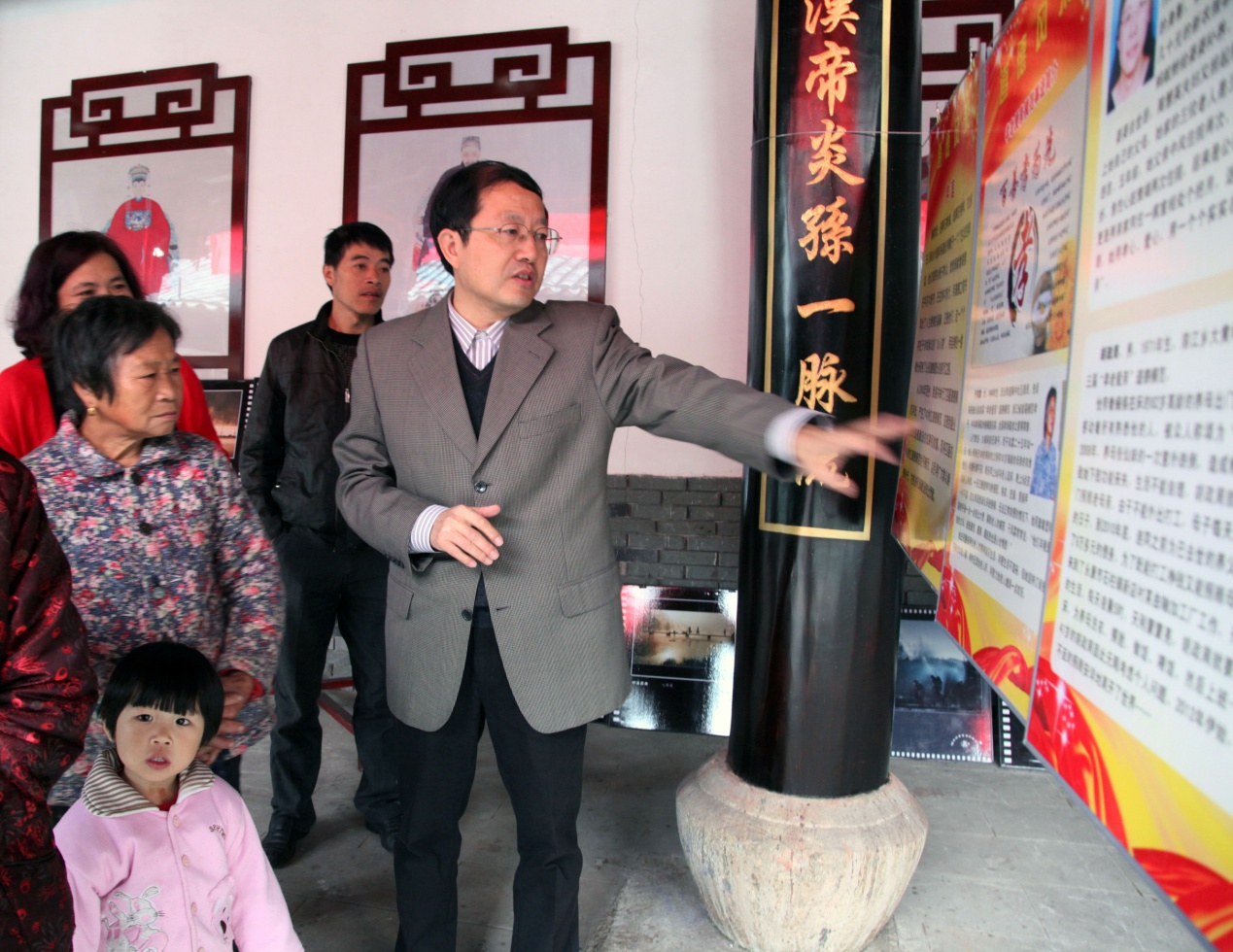 缙云下洋村文化礼堂*浙江图书馆副馆长刘晓清现场讲解展览《独峰展窗》。