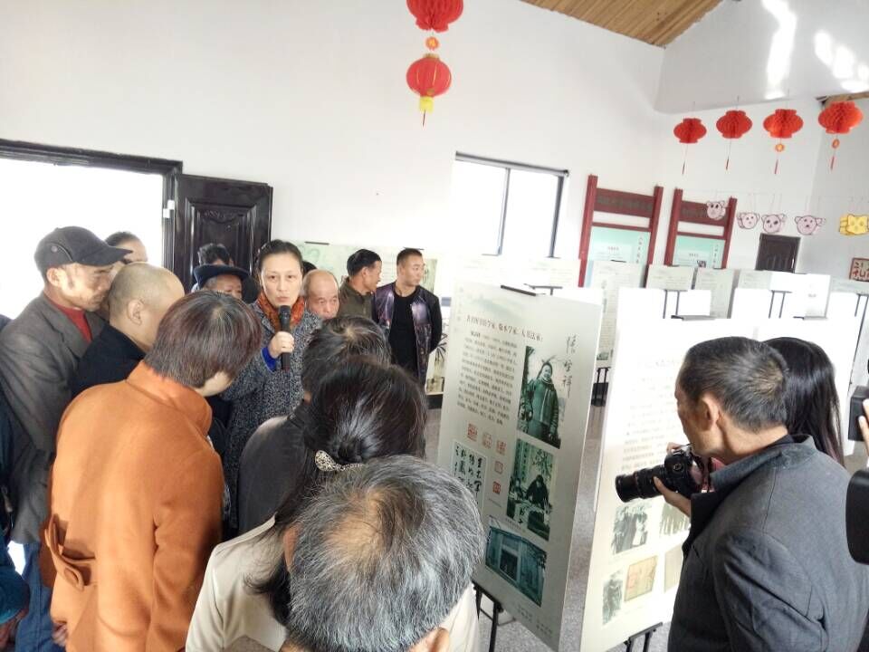 海宁荷叶村文化礼堂*浙江图书馆党委副书记徐洁现场讲解展览《海宁名人展》。