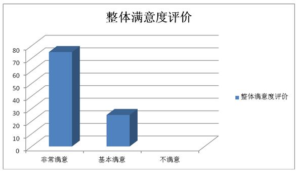 根据本场讲座收回的调查表显示:对本场讲座非常满意度为75%,基本满意度为25%,不满意度为0。