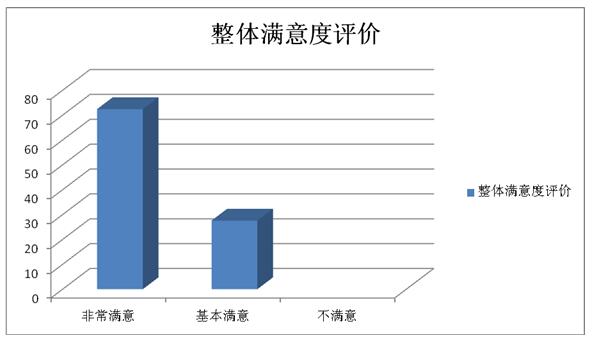 根据本场讲座收回的调查表显示:对本场讲座非常满意度为72.4%,基本满意度为27.6%,不满意度为0。