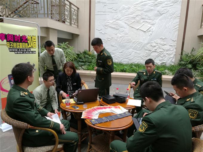2016年4月20日,谷雨节气后的第一天,浙图数字资源中心的工作人员驾车穿越春雨浸润的西子湖畔,走进鹅黄翠绿环绕中的浙江省公安厅警卫局,推广移动数字阅读,将装满数字资源的电子阅读器送到广大官兵手中。