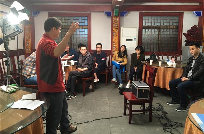 为期5天的培训,学员们分成三组扛着设备跟着摄制组山上山下跑,同吃同住,体会着摄制组的艰辛,也感受着拍摄过程的乐趣。老师们就文化专题片的策划和制作流程、摄像器材机器辅助设备、灯光设备的基本操作使用、文化专题片前期拍摄的基本操作流程、文化专题片拍摄的手法及技巧、电视编导艺术等内容面对面、手把手地教授学员。课程最后还结合4.23《华夏韵,中国梦》经典诵读晚会的现场拍摄活动,在安徽省摄制组老师的指导下进行了实战演练,三组队员、三个机位、三个景别,完成一场精彩的演绎。