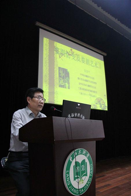 讲座中,徐国平从婺剧形成的历史渊源、婺剧形成的基础、婺剧形成的阶段、婺剧形成的标志阐述了婺剧的发展演变过程,并通过高腔、昆腔、乱弹、徽戏、滩簧、杂调等表现形式分析了婺剧的唱腔与伴奏。由此总结出婺剧表演的四大艺术特点,分别是:一、文戏武做、武戏文做;二、一戏一招,彰扬个性;三、表演程式,独到特殊;四、特技多样,技巧惊人。