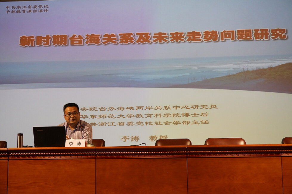 李教授主要讲解了2015年两岸关系的回顾与反思,浙江对台工作的突前地位和独特重要性,如何客观评价台湾经济社会的发展,蔡英文时代究竟是新对抗还是冷和平,最后是关于中国当前和未来的工作。李涛主任在讲座中表示,根据蔡英文女士的就职演说可以看出她并不支持台湾和中国的进一步友好关系的发展,中国和台湾的未来处境笼罩着迷雾。但是中国人应坚持一个中国的原则不动摇。解决台湾问题,完成祖国统一大业是近阶段核心敏感问题,具有极大的现实意义和战略价值。李教授主张具有全球战略眼光,具有历史共识,从而把台湾问题做一个定位和思考。