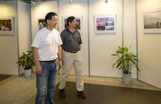 浙江省摄影家协会主席吴宗其(右)参观展览