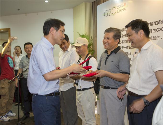 8月22日,《建设美丽浙江 喜迎G20峰会——浙江省直机关干部职工摄影作品展》在浙江图书馆开展。浙江省摄影家协会主席吴宗其、浙江省文联副主席、省文联书记处书记柳国平、中共浙江省直属机关工作委员会副书记王义等领导参加开展仪式并为获奖者代表颁发证书。