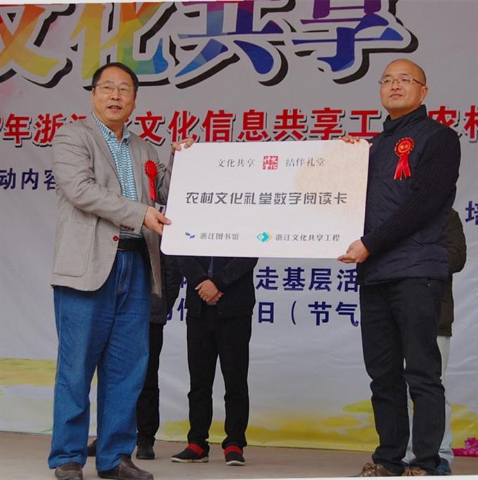 2017年1月16日,在鸡年新春即将来临之际,由浙江图书馆、龙泉市委宣传部和龙泉市文旅委联合主办的“文化共享 结伴礼堂”——2017浙江省文化信息共享工程农村文化礼堂行暨春节活动在龙泉安仁镇刘坊村文化礼堂举行。浙江图书馆馆长徐晓军出席启动仪式并致辞,还向刘坊村文化礼堂赠送了农村文化礼堂数字阅读卡。
