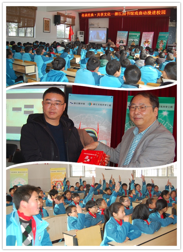 安仁镇中心小学的小礼堂里座无虚席,由浙江图书馆赠送的精品戏曲动漫《孙悟空三打白骨精》吸引着孩子们聚精会神的观看。由文化部全国公共文化发展中心组织,借用最先进的数字技术,将现代动画与传统戏曲相融合,制作成戏曲动漫送进中小学校园,当生、旦、净、末、丑的戏曲人物变成可爱生动的动漫造型,当各种动作、唱腔融入到动漫场景,当传统的戏曲以大家喜闻乐见的动画形式表现出来,更能吸引孩子们的关注,调动同学们的热情。“中国戏曲有哪五大剧种?”看完越剧《九斤姑娘》后,同学们争先恐后的举手回答问题。“改成动画片后,戏曲更通俗易懂,更吸引我,看完印象更深刻”五年级的学生说。