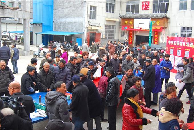 “贴春联,迎新年”是中国的习俗,书法家手书送春联活动现场人头攒动,书法家们挥毫泼墨,村民们排着队儿领春联,和乐融融。排队间隙,部分村民还掏出手机参加春节扫码有礼活动,“文化活动送到了家门口,不仅可以拿个小礼物,还能进一步关注今后市里,甚至省里有什么活动可以参加,真方便。”