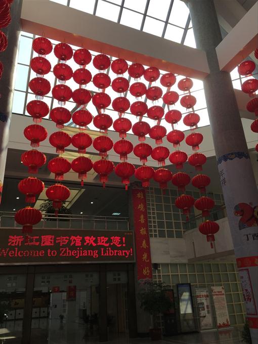 农历大年初一的早晨,火红的灯笼,喜气的春联,精心装扮的浙图迎来了新年首批读者的到来。