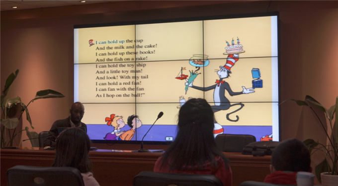 热身之后正式进入《The Cat In The Hat》的阅读环节,作为一名儿童文学作家,Dr. Suess 以《The Cat In The Hat》闻名于世,这篇故事也代表了很多人童年的某一段时光,Eddie老师用他纯正的英文朗读带领学生们进入故事中,从角色、环境的描述开始,到Cat角色的加入,让学生们自由表达故事是如何在问题中推进,如何一步步改变,而Dr. Suess的带帽子的猫究竟给故事中的小朋友们带来了怎样的惊喜和难题……整个活动中,学生们从羞涩的听讲转变为踊跃的思考和回答,全程用英文和Eddie老师互动,在戏剧化的阅读中重新感受Dr. Suess的故事《The Cat In The Hat》。