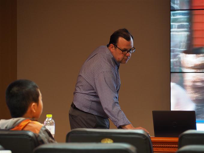 在赏析电影片段的过程中,Kurt老师以三个问题引起小读者们的思考,这三个问题分别是:WHAT IS A CHARACTER? WHAT IS A WANT? WHAT IS A THEM? 通过Kurt老师对这三个问题的解读,小读者们懂的了关于一部优秀的小说或影视作品,其每一个人物角色都是有存在的意义,而每一个人物、没一件事与物都会有其存在的需求,而主题是一切故事发生所要趋向的目标。在Kurt老师的引导下,在场的每一位小读者都踊跃地参与到问题的讨论和发言当中。在这个过程中,大家都对阅读书籍和观看电影有了新的想法和新思路。