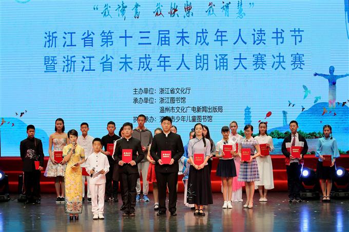 2017年5月20日,由浙江省文化厅主办,浙江图书馆、温州市文广新局承办,温州市少年儿童图书馆执行承办的第十三届浙江省未成年人读书节启动仪式暨朗诵大赛决赛在温州举行。