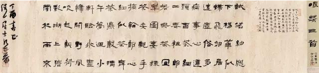 这52件作品,是四位浦江的青年才俊怀着对书法的敬畏之心,用各自擅长的书体,围绕着春天这个主题创作的。有古代的诗词,也有现代诗。春雨、春风,让人很自然就想起了杜甫的那首《春夜喜雨》:“好雨知时节,当春乃发生。随风潜入夜,润物细无声。”