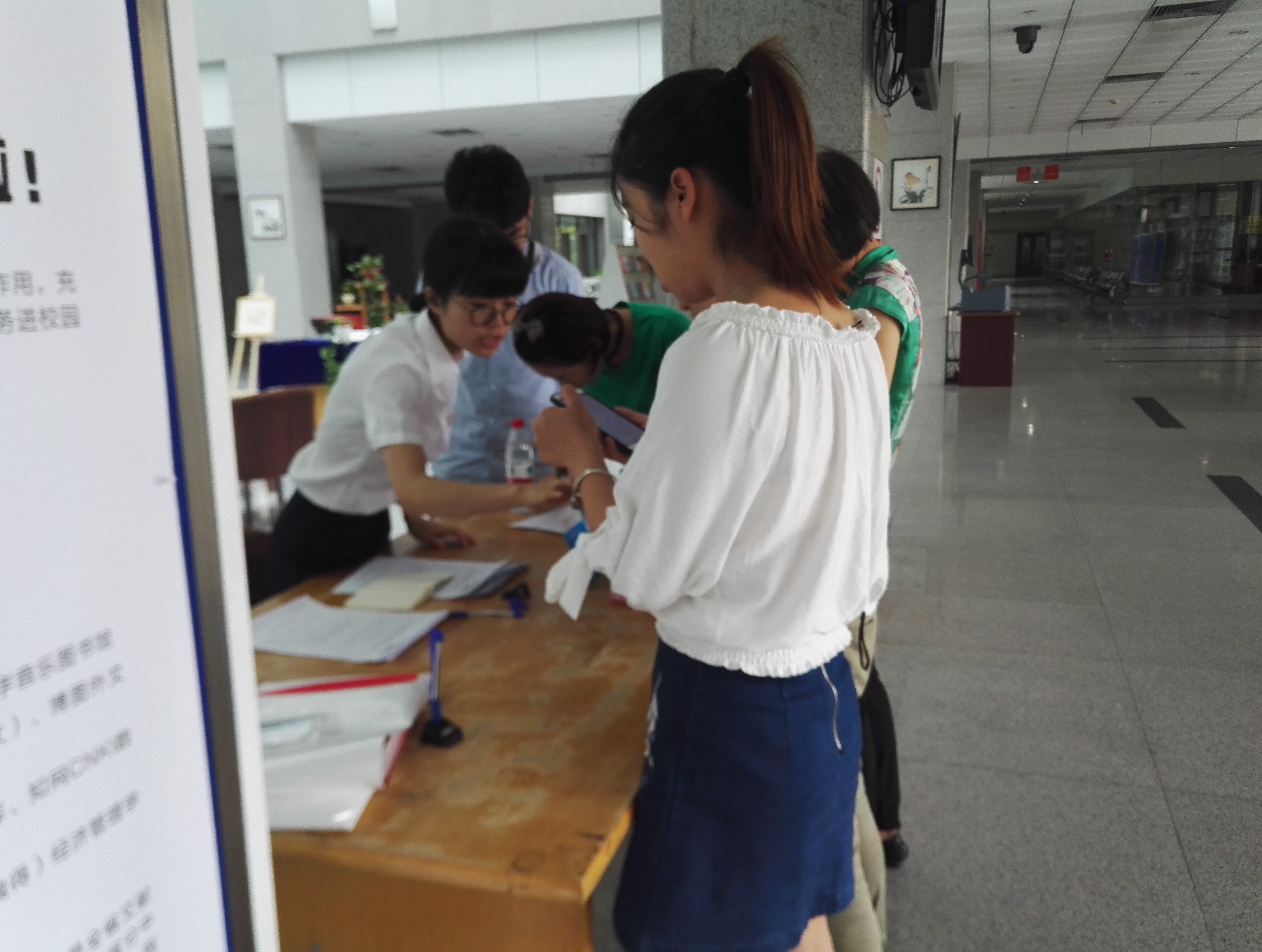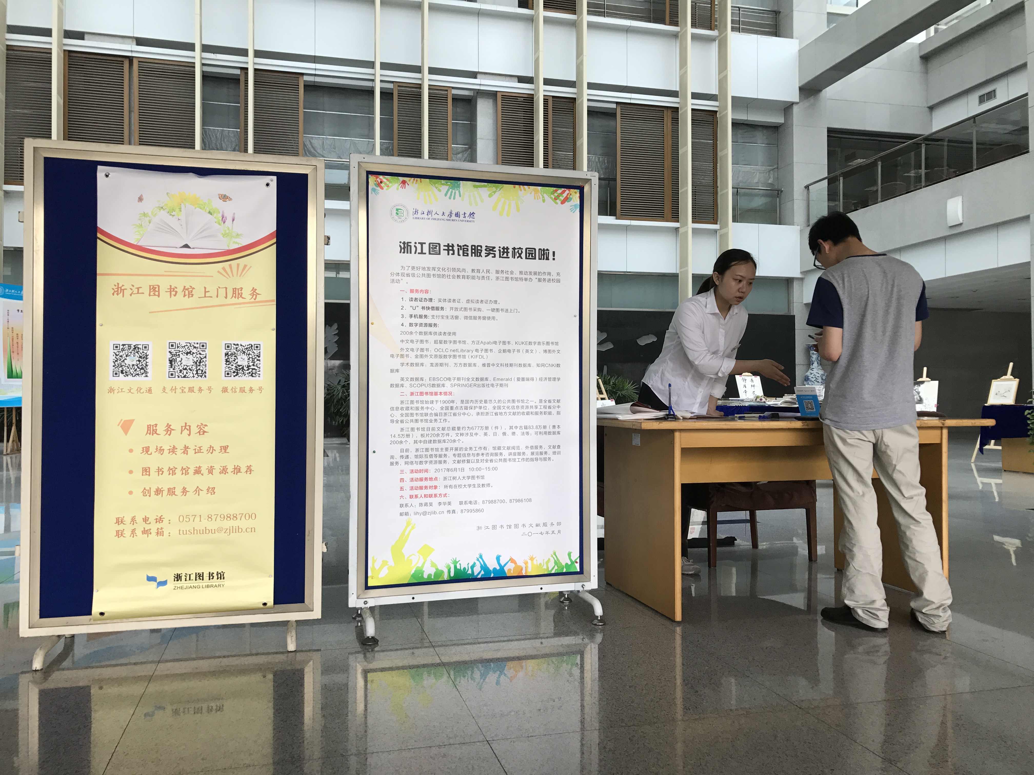 2017年6月1日,浙江图书馆图书文献部工作人员来到浙江树人大学,为在校师生们提供上门办证服务,并对如何利用浙江图书馆馆藏资源进行解答。