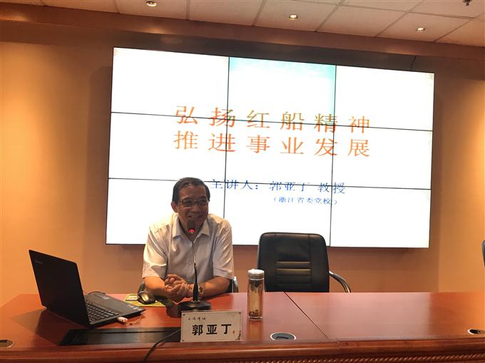 今天上午,在浙江图书馆里似乎传来了阵阵桨声,原来是来自省委党校的郭亚丁教授为我们带来了关于“弘扬红船精神,推进事业发展”的专题讲座。