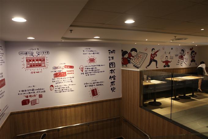 浙江图书馆肯德基分馆馆藏图书2000余册,汇集了大量中外优秀绘本、少儿读物,并在开馆后会定期予以更新。在室内设计上,分馆用简笔画再现了浙江图书馆的发展历程,让读者可以在短短几分钟内了解到浙江的首个公共图书馆——浙江图书馆如何从一个藏书不过万册的藏书楼演变为如今馆藏近680万册的现代公共图书馆。