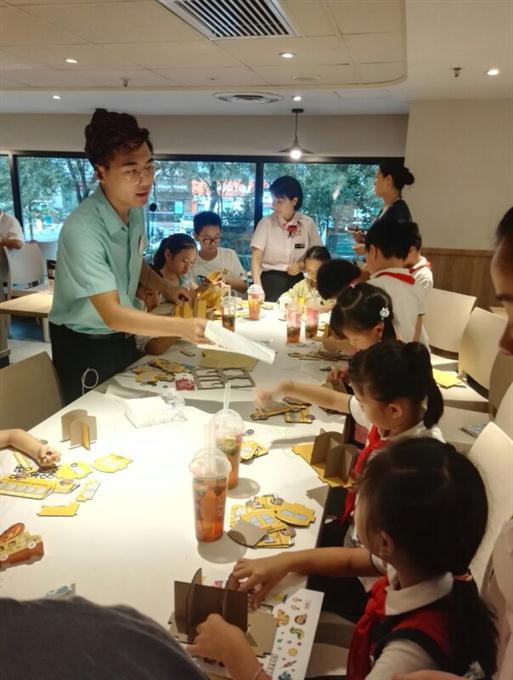 开馆当天,肯德基分馆邀请了曾创作“刀刀狗”漫画形象,极具人气的漫画家慕容引刀做现场访谈,并现场作画、签名赠书。深受小朋友喜欢的肯德基故事哥哥也来到了现场,为小朋友们制作笔筒,讲述《神奇校车》惊险有趣的历险故事。
