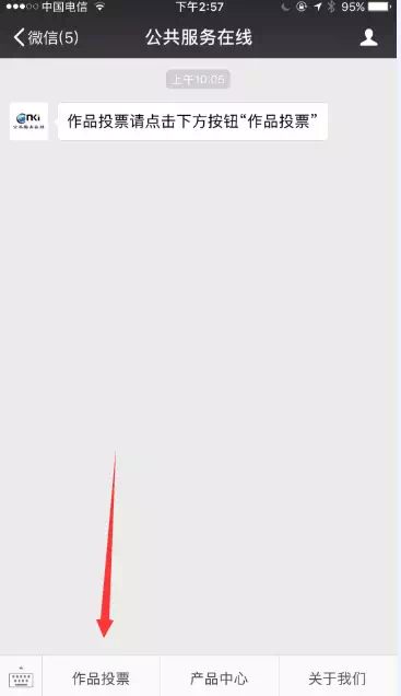 2. 进入公众号,点击底部的“作品投票”按钮。