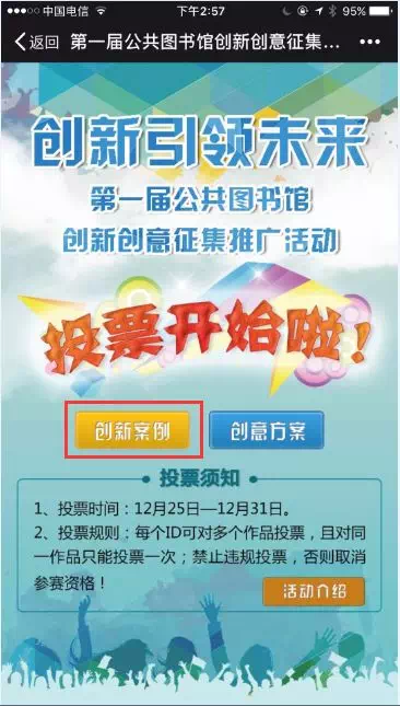 这三个活动项目参加了全国第一届公共图书馆创新创意案例征集推广活动,并进入了作品投票阶段,请各位亲为我们的项目投上宝贵的一票。