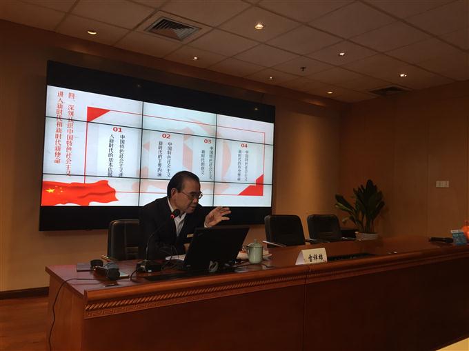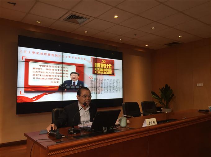 在讲座的开始,雷书记首先向大家介绍了十九大的会议概况,让听众从会议内容、会议日程、会议成果等多方面全面了解十九大。雷祥雄书记用语言简意赅,叙述详略得当,将十九大的整体面貌清晰地呈现在我们眼前。