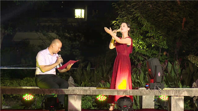 主题朗诵会在张元济图书馆涵芬朗诵团9位团员合诵的《海盐,走过千年》中开启,为我们娓娓讲述了一个千年古县,千年盐都,千年海塘,千年港埠,千年古刹的动人传说。随后,浙江图书馆文澜朗诵团团员伴着皎洁的月光缓缓入镜,在迷人的夜色里,一首《月光》最是应景;绍兴图书馆带来的《印象·绍兴》让大家更了解绍兴的人文。涵芬朗诵团又有两位年轻人将《青春恋歌》演绎得活泼浪漫,带许多人回到那个单纯而又美好的青春年代。三地的诵友们陆续精彩亮相,有唯美经典的《你若懂我,该有多好》、《老了》、《故乡的枫树林》、《烟雨江南》,有古体诗《钗头凤》、《将进酒》、《梦游天姥吟留别》、《越人歌》,更有海盐本土大诗人李平的原创作品《四季组诗》和向阳小诗人创作,并和其母亲一起朗诵的《仲夏夜之梦》。朗诵会中穿插的大诗人向小诗人赠书环节,禅舞,旗袍秀等也为仲夏之夜烘托了清新、浪漫、惬意的气氛,一场伴着蝉鸣的朗诵会带着观众领悟经典之内涵,感受仲夏之诗意。而三地联动更是掀起了全省各公共图书馆以朗诵艺术打造有声阅读空间的风潮,增进各地以有声语言这种形式开展阅读推广工作的经验交流。