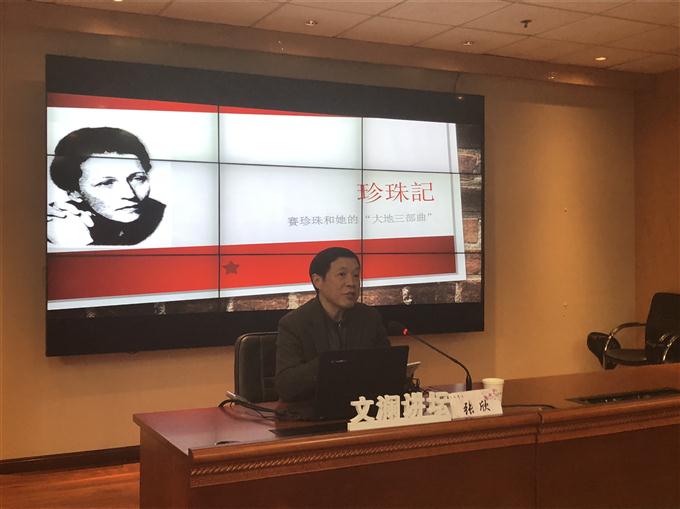 张欣教授分“招怨记”“结缘记”“得珠记”和“会心记”四个章节来介绍赛珍珠这位传奇女作家。赛珍珠生于美国,但童年大部分时间在中国庐山度过,而后辗转安徽、南京等地,精通汉语和中国风俗,对那个年代中国农村的生活非常熟悉。她是一位以中文为母语的美国女作家,她和中国的“结缘”如此深厚。她描写中国农民生活的长篇小说《大地》(The Good Earth),于1932年获得了普利策小说奖,于1938年获得诺贝尔文学奖。她是美国历史上第一位获得诺贝尔文学奖的女作家,也是唯一同时获得普利策奖和诺贝尔奖的女作家,更是唯一一位以中国题材作品获奖的美国作家。如此卓越的荣誉也给当时的赛珍珠招致了同行的“埋怨”。