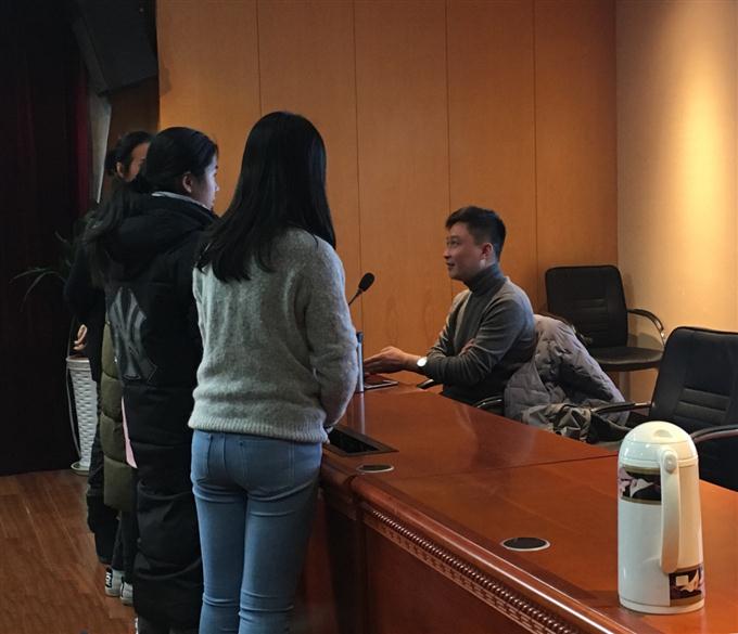 刘老师首先仔细讲解了最基本的共鸣发声要领,然后从字节、词语到诗歌进行练习。在练习一些成段文章的朗读时,刘老师给大家介绍了作者背景,字句的含义,让大家领悟作者感受,文章意义,并逐字逐句教大家应如何进行处理。在单个同学进行练习时,刘老师也会及时给出专业指导。