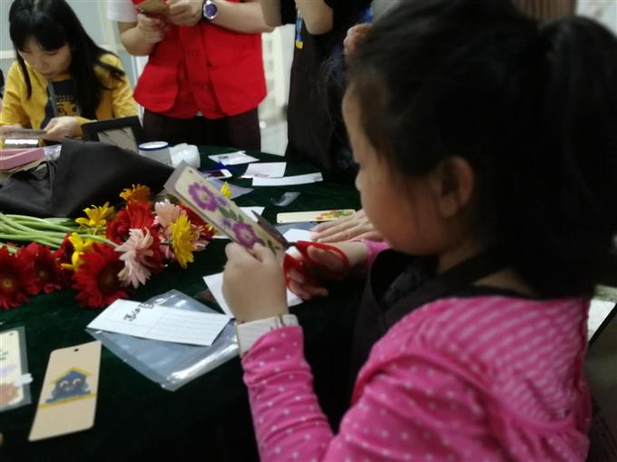 本周【知造屋】主题是神奇的大自然,对话最美自然文字。通过各种不同的手工体验方式,一起感受沉浸自然里的植物芬芳!活动开始前,想要参加手工体验活动的很多读者们便已迫不及待地来到浙图二楼回廊体验区等待活动开始。下午13:00—15:00同时进行的是《花的世界·木质书签DIY》和《植物拓染体验》。下午15:00—17:00是《异想空间·创意纽扣花》的制作。活动正式开始后,现场便座无虚席。