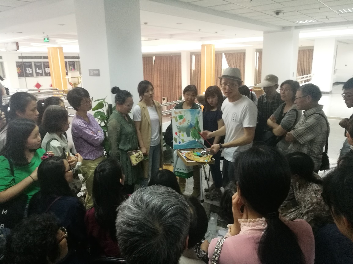 4月29日下午14:00,由浙图组织的油画基础课第二讲《油画材料与技法入门》在一楼文澜厅开讲啦!主讲老师:王家豪。毕业于中国美术学院,绘画硕士研究生。自开课以来,喜爱油画对此感兴趣的读者们纷纷前来。本次基础课分为两个部分,第一部分在一楼文澜厅进行理论知识讲解,第二部分在二楼回廊处进行现场油画材料与技法演示。