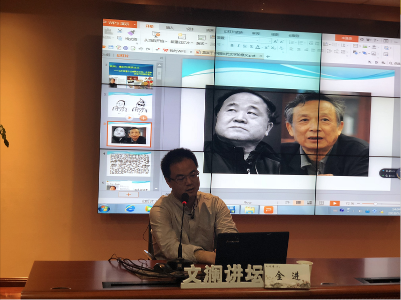 2018年5月26日14:00,浙江图书馆二楼集体视听室内,由金进老师主讲的“民间、魔幻与现实主义——关于莫言小说世界的分析”讲座拉开了帷幕。