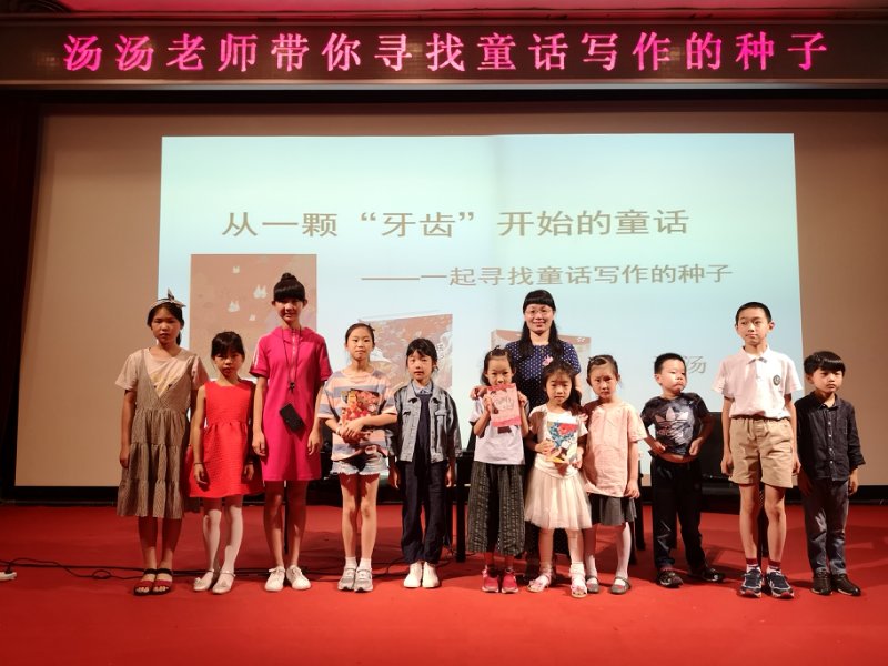 一颗小小的种子,能成长成可口的谷物、鲜丽的花朵以及葱郁的树木。那么,充满想象的童话故事的种子,又是什么样的呢?汤汤老师用和蔼的声音,为现场的小朋友与大朋友们分享着自己的写作经历。
