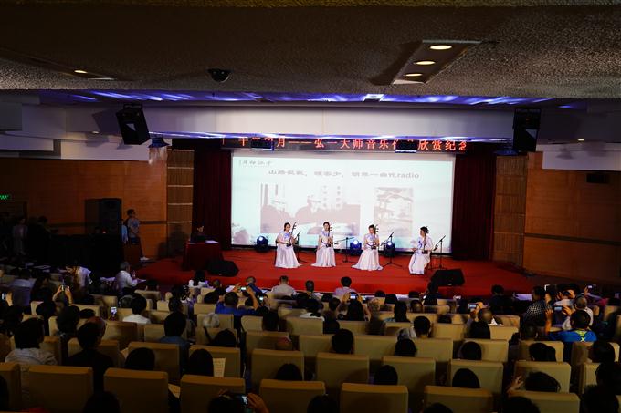 2018年,正值弘一大师在灵隐寺受具足戒100周年,6月5日晚,“弘一大师音乐作品欣赏晚会”在浙江图书馆二楼报告厅轻灵开启,活动旨在通过演绎弘一大师的经典作品,纪念这位杭州本土的文化使者,让大众充分感受音乐艺术的魅力,提高文化自信与人文修养。当晚,有500余位观众聆听了这场盛会。